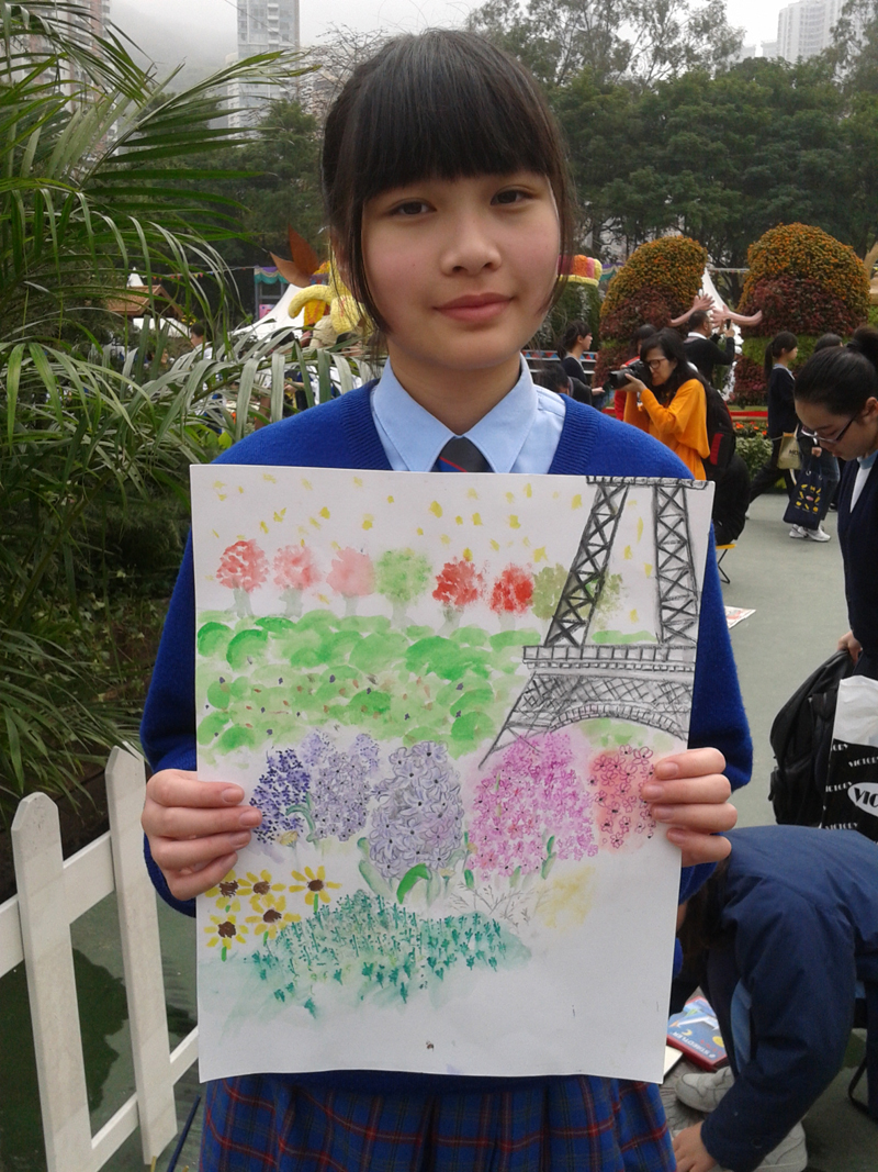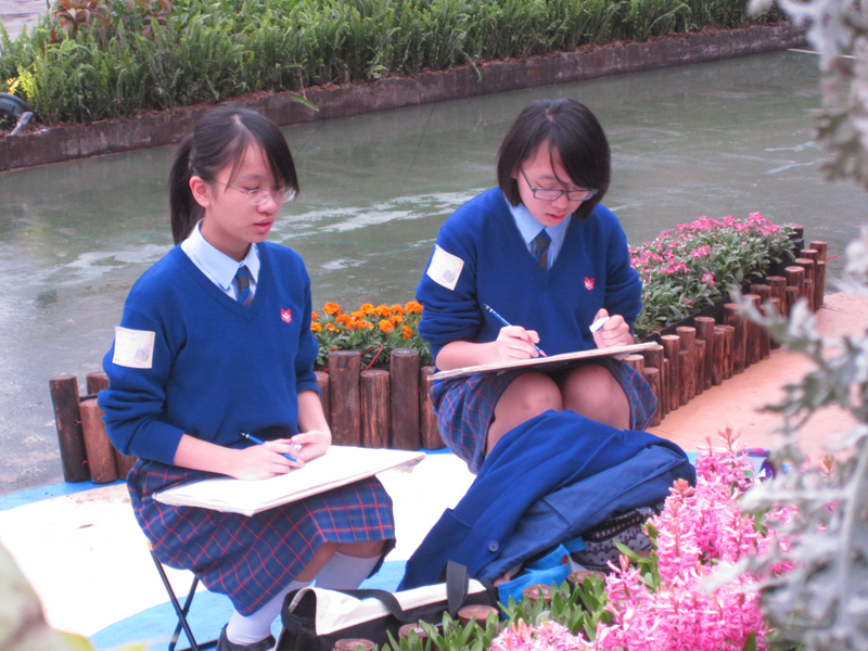 9 of our students were selected to attend the drawing competition held by Hong Kong Flower Show 2012. Students enjoy the theme flower, “Hyacinth”, and 20 countries’ horticultural exhibit during the competition in Hong Kong Victoria Park.
