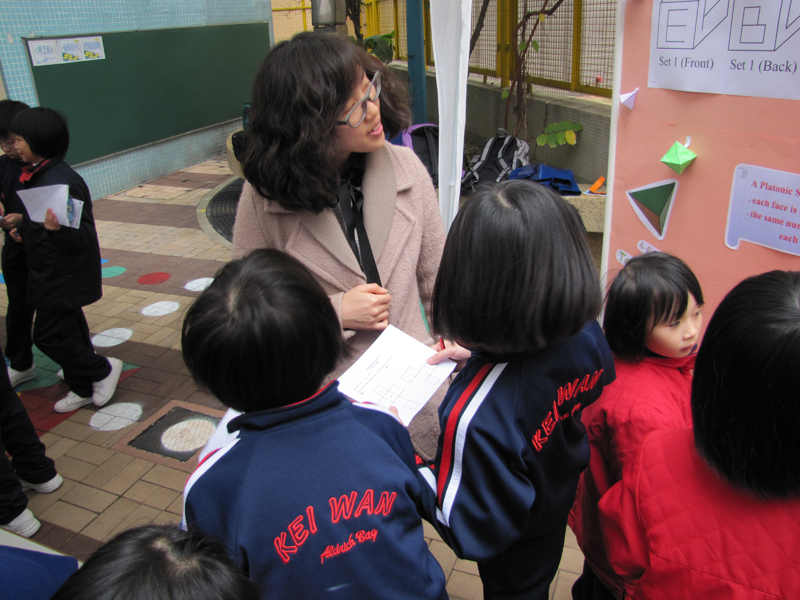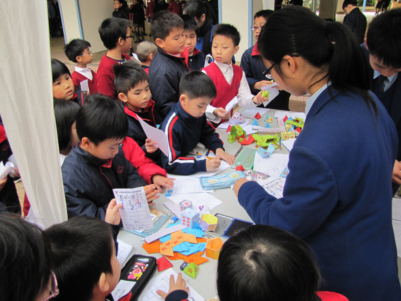 CCC Kei Wan Primary School (Aldrich Bay) held a Mathematics Fun Day on 2nd February. Our School was invited to set up a stall on their campus for this event. The topic of our stall is platonic solid. Through paper folding and matching games, the primary school students understood more about the concepts of solids.