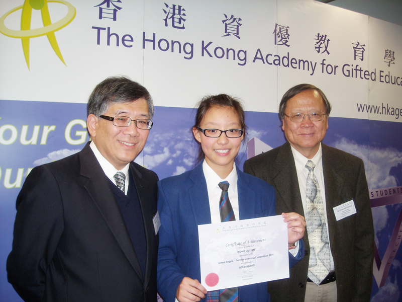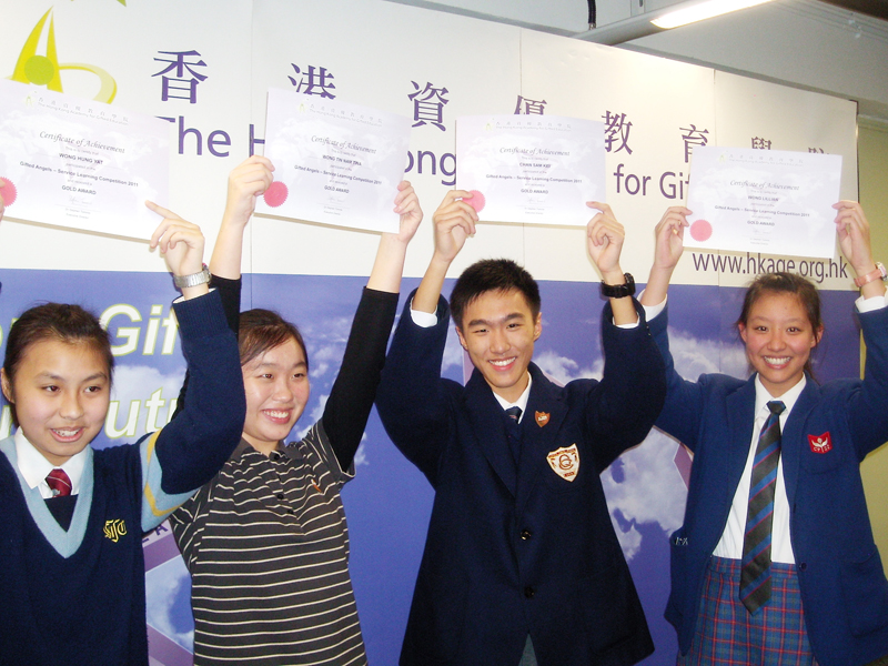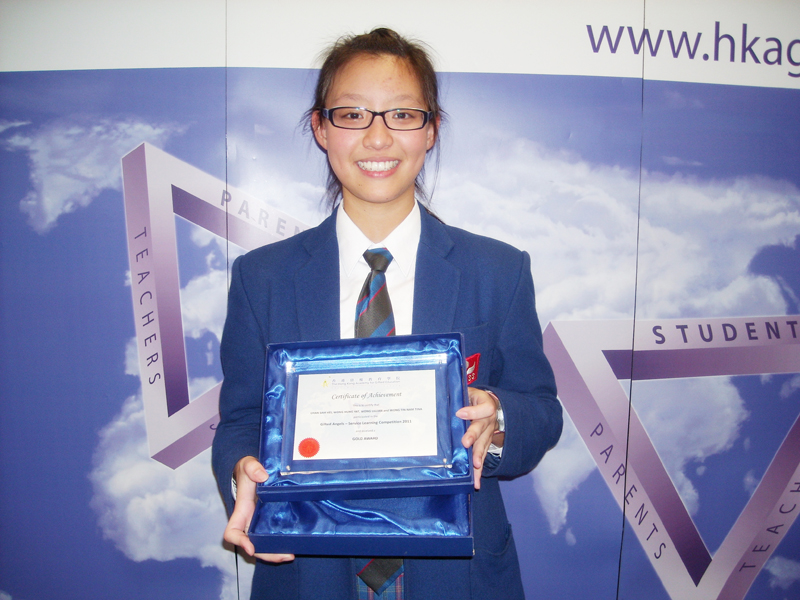In the Gifted Angels – Service Learning Competition organised by the Hong Kong Academy for Gifted Education (HKAGE), completed in December 2011, Wong Lillian (4A) from our School successfully led her team of four to grab the Gold Award in the Competition with project title “童•話”.