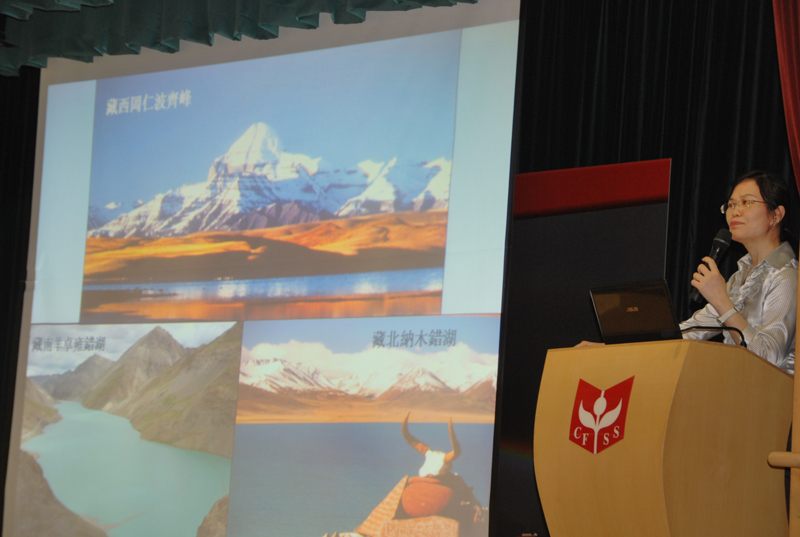 A photo exhibition, Culture & Landscape of Tibet, was held in CFSS during 26-29 Oct, 2012. In addition, Dr. Brenda Lee, a specialist in Tibetan & Himalayan Studies, was invited to address our students. She warmly encouraged them to experience the daily life of Tibet. Reporters interviewed two of our S.4 students. They both admitted that the photo exhibition did transform their impressions on Tibet - modern railway, free education, concern for environmental protection, etc. can also be found in Tibet!