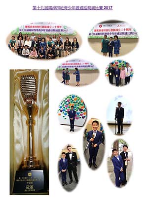 Cross-strait Four Regions Youth Putonghua Recitation Competition is a large scale competition organized by Mainland, Hong Kong, Taiwan and Macau alternately every year. Five selected students of each region will participate in this highly competitive event. Kwok Ming Chung (2A) of our School received Champion of the Competition. This is a real honour to both Ming Chung and our School.