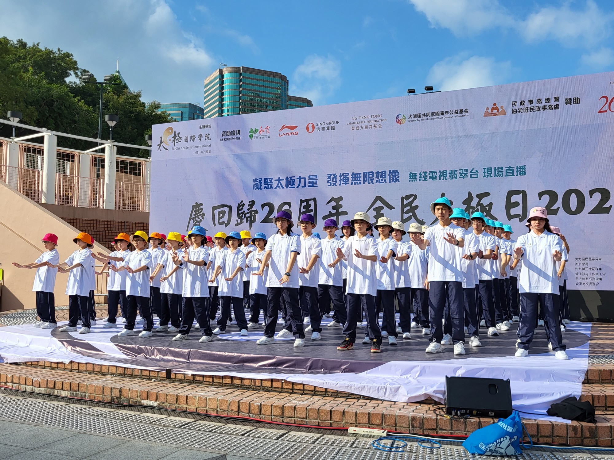 全民太極日是一個旨在促進太極文化普及和推廣的活動。今年的全民太極日已於十二月九日星期六上午在九龍公園廣場舉行。參加活動的中一和中二同學由劉嘉華校董和何迪信校長帶領。在電視直播鏡頭前,同學集體展示他們從九月份開始學習太極所取得的成果,表演太極簡易四式。